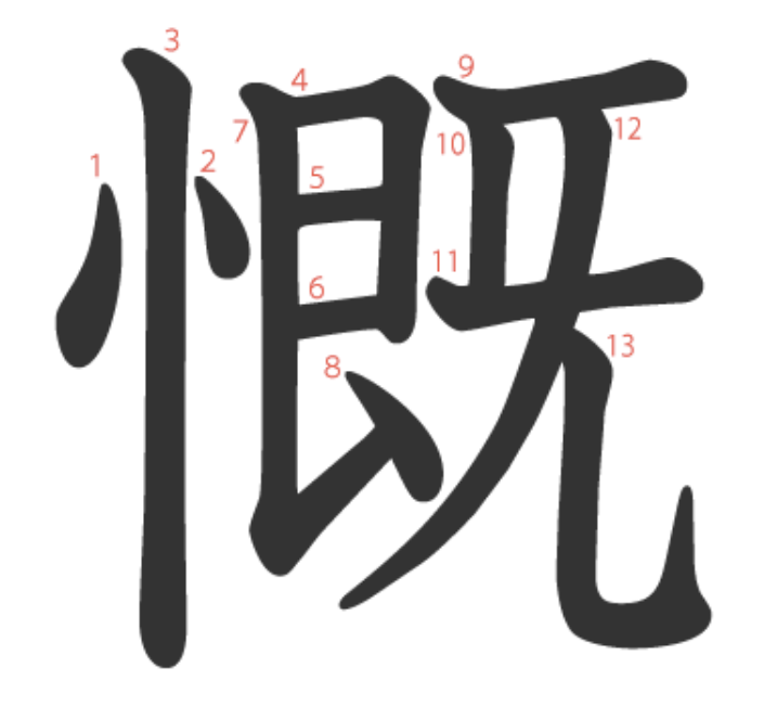 慨 = 忄 + 既。