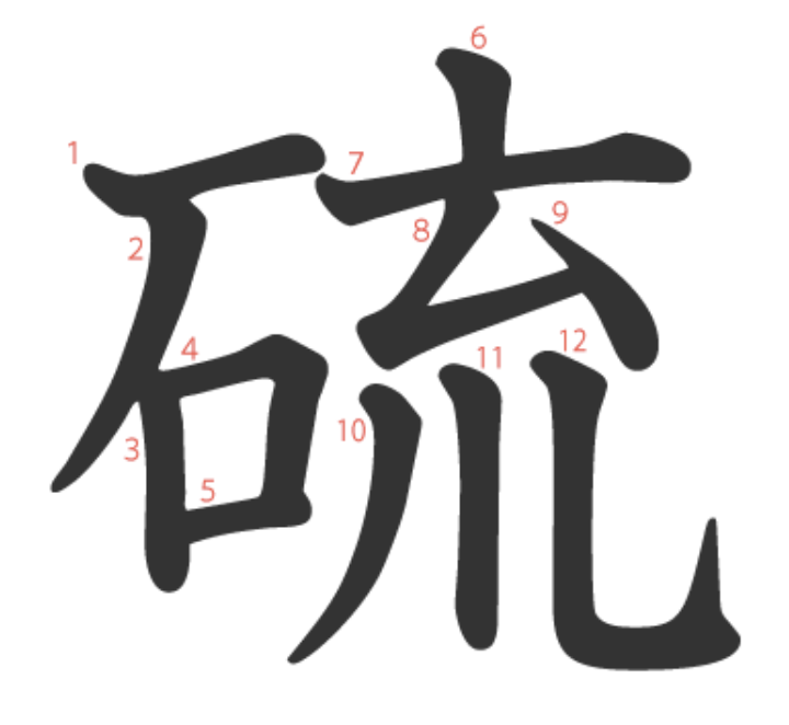 硫는 "돌(石)이 황산에 녹아 흘러내리다(流)" -> "황"이라는 뜻의 글자입니다.