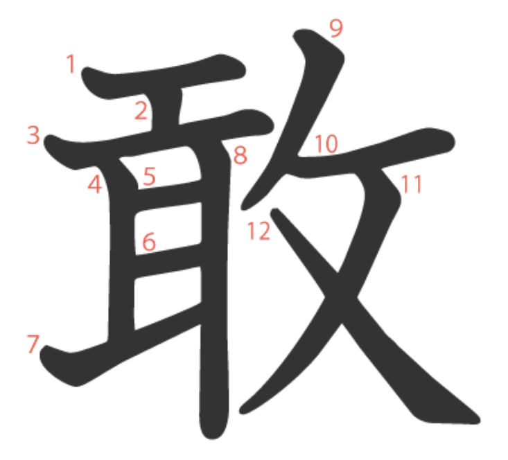 - カン 果敢 과감, 勇敢 용감, 敢行 감행