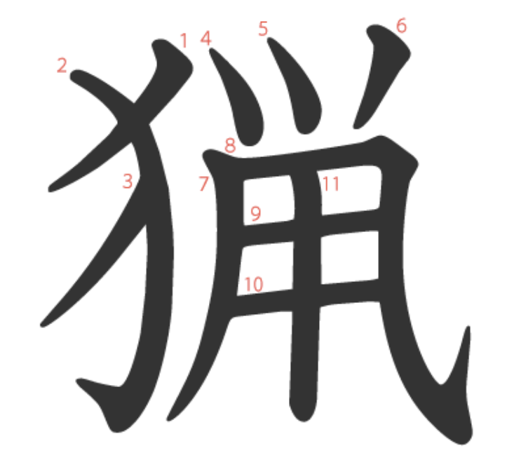猟는 "말을 타고(鼡) 사냥개(犭)를 몰며 사냥을 하다" -> "사냥하다"라는 뜻의 글자입니다.