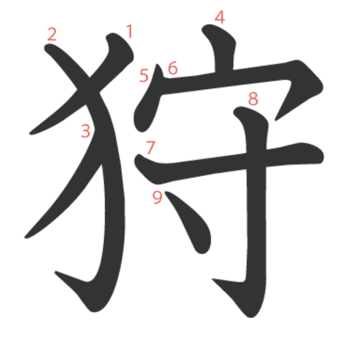 (의미부) 「犭」는 "개"를 뜻합니다.