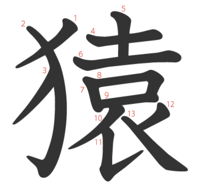 猿는 "팔다리가 길쭉한(袁) 짐승(犭)" -> "원숭이"라는 뜻의 글자입니다.