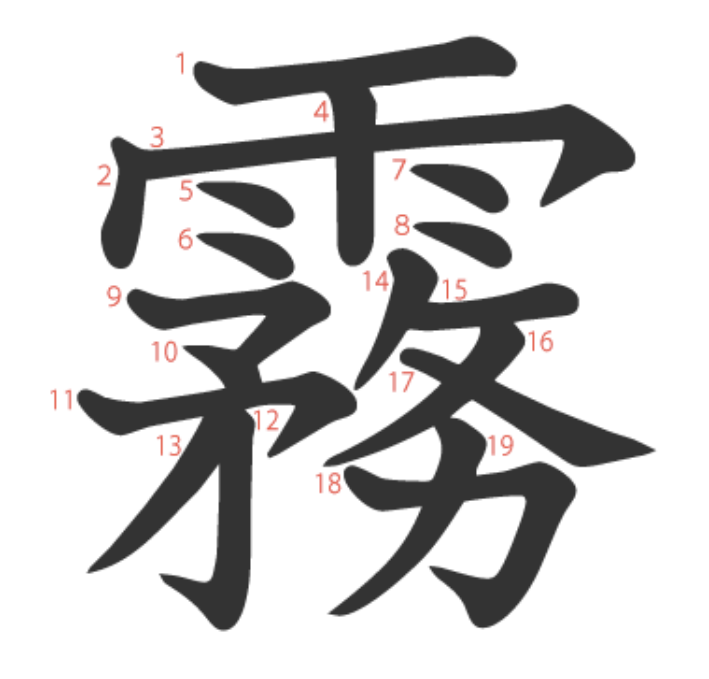 霧 = 雨 + 務。