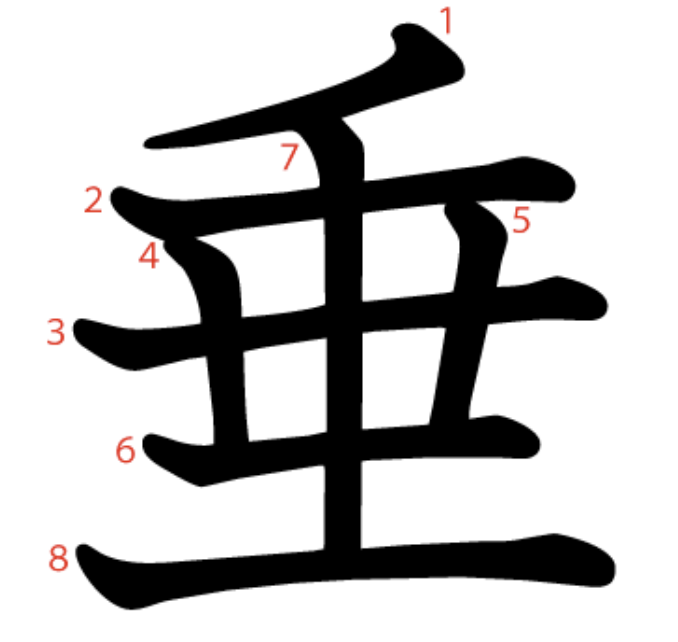 垂는 "풀잎이 드리워져 있는 모습"을 그린 상형문자입니다.