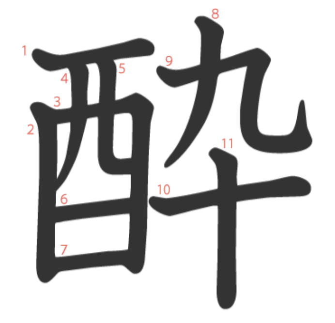 酔 = 酉 + 卆。