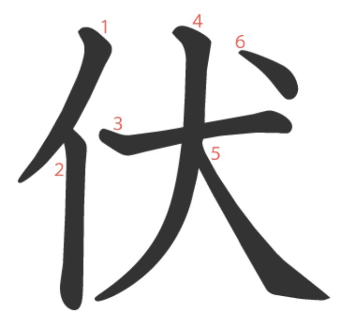 伏 = 亻 + 犬。