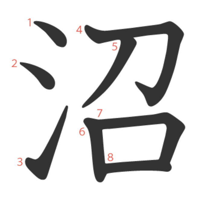 沼 = 氵 + 召。